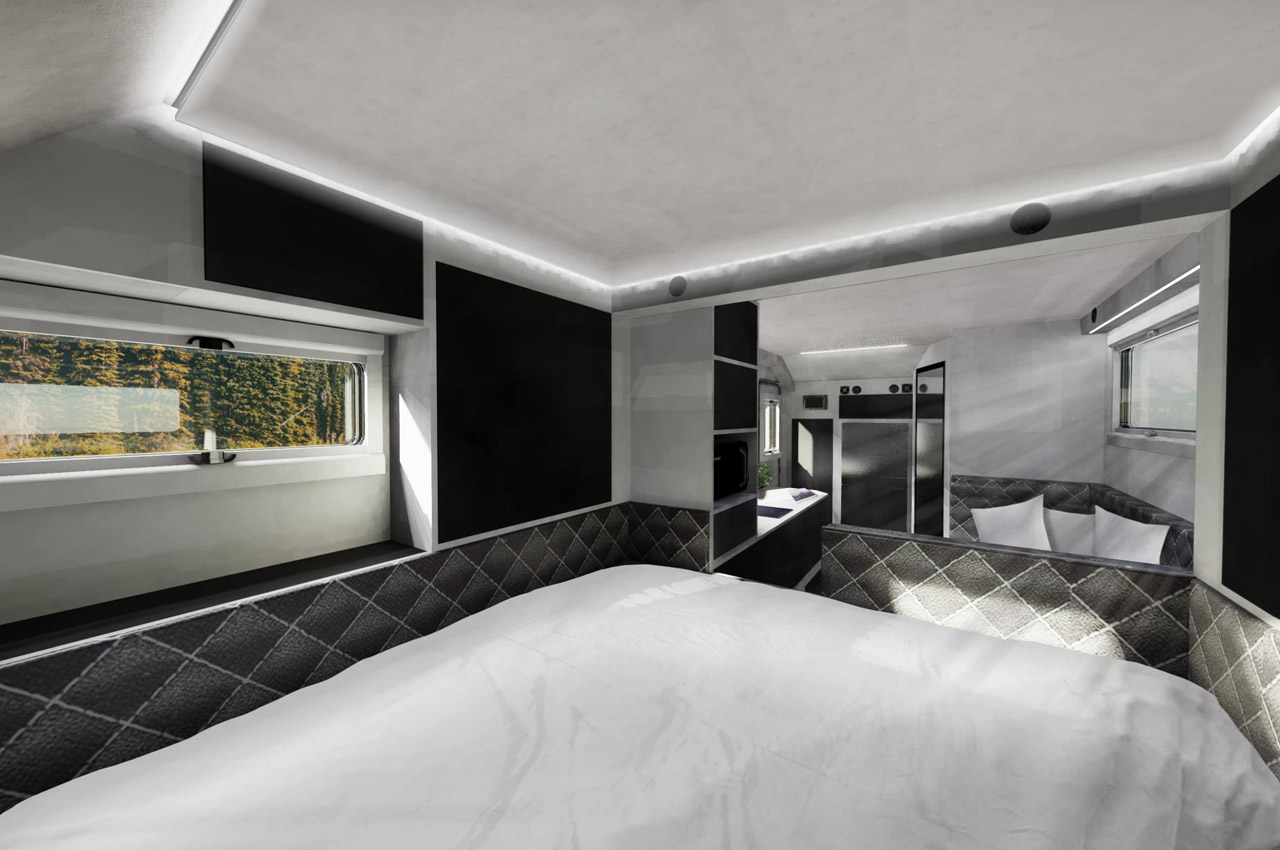 On the outside, the EXP-8 is a fortress with an insulated body and a waterproof chassis. To take on any demanding terrain, the off-road trailer has an independent moving suspension system aided by the big 37-inch mud-terrain wheels. This means a stable ride inside, even though you’ll be treading the most demanding scalable landscape on the face of the planet. The rig will have its own water purifications system and a 1,600-W solar energy array on the roof connected to a 2.5kWh battery pack for electricity needs. For backup, there is a 5,000-W inverter as well. According to Bruder, the trailer will also have a reverse-osmosis system to purify water from natural sources, so that hardcore explorers never ever run out of drinking water.