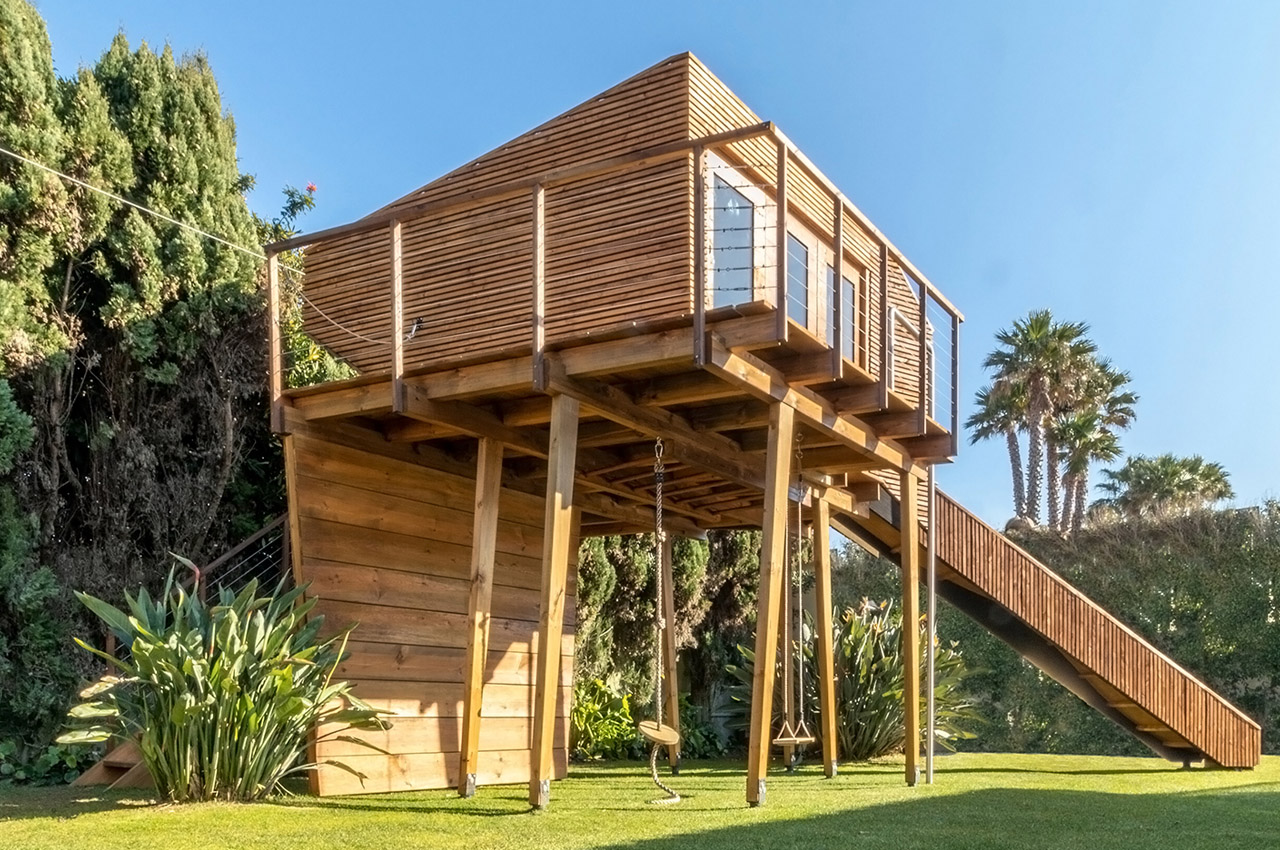 Normalize adults living and chilling in treehouses because we are certainly going through a lot more than children and this is the escape we need! Cassiopeia is one such shelter that every grown-up dreams of having, it is a treehouse that was born in a garden without a tree for us to disconnect from the virtual world. It has multiple levels, a fire-man pole, a slide, a swing, a zip-line, a net bed, monkey bars, and a climbing wall in sculptural form with legs that grow in the garden!