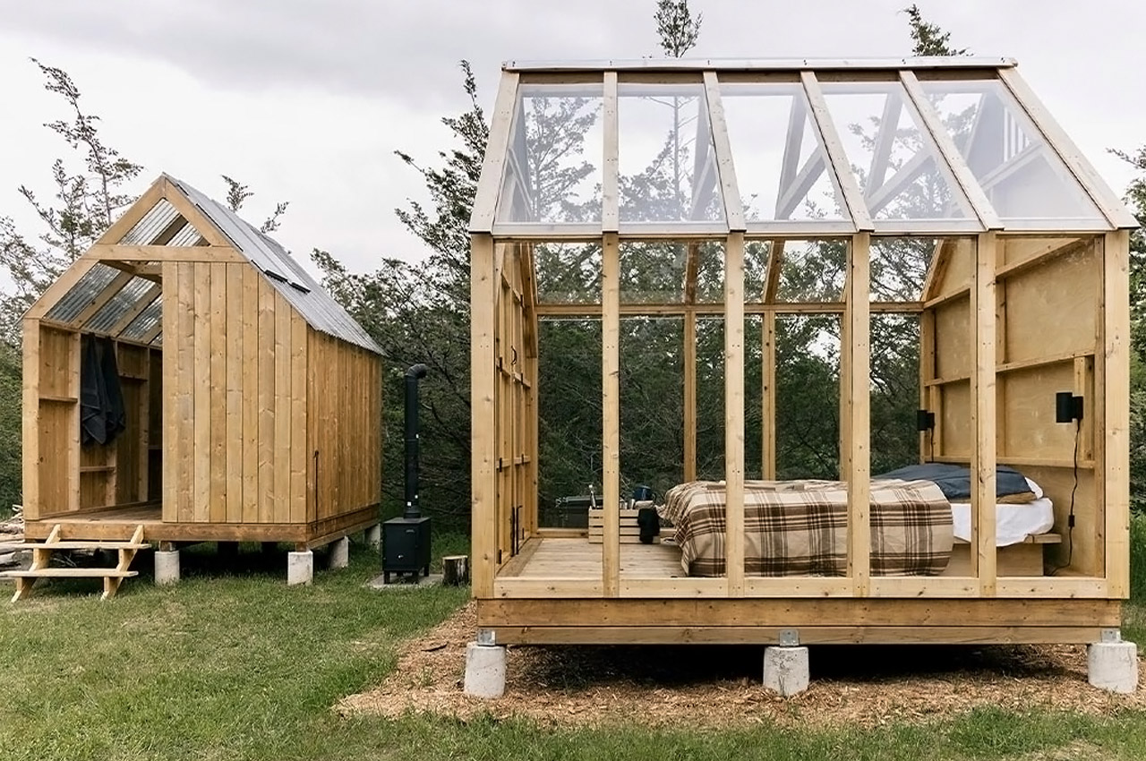 The cabin hides amidst a lush 75-acre property surrounded by a massive wooded area that is used for the business’s various other staying experiences. Payam Shalchian designed the 80-square foot cabin and also co-owns the B&B. The theme is ultra minimalistic – the exterior is a simple wooden frame and the interior only houses essential furniture. The luxury in this case is the immersive experience you have within nature. To truly bring the outside in, the majority of the walls and ceiling panel areas are made of transparent plexiglass. The cabin is basically a sleeping zone and has another supplementary 64-square foot cabin which is a bathhouse containing a shower and composting toilet.