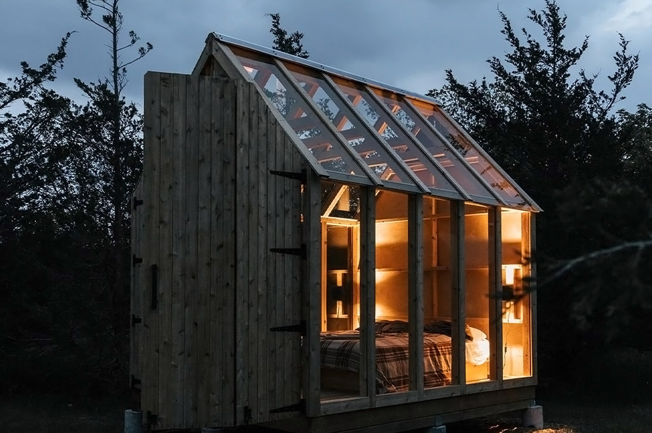 Setting up camp has never looked so good and it setting up a minimal glamping cabin just got a whole lot easier thanks to Den! The cabin design studio has a range of flat-packed DIY-style kits that let you assemble your own A-frame cabin in a few days. The average size is 115-square-foot (10.68-square-meter) with models that are larger and smaller depending on what you are looking for. Once assembled, you can see the slanted wooden walls and a floor-to-ceiling triangular window just like how we drew a picture of a cabin as children. The space is minimal and can be transformed into a cozy getaway, a yoga studio, or a creative retreat! The prefab pieces for the cabin are made in New York and come with pre-drilled holes, all wooden structural parts that lock together, bolts, and even door hardware.