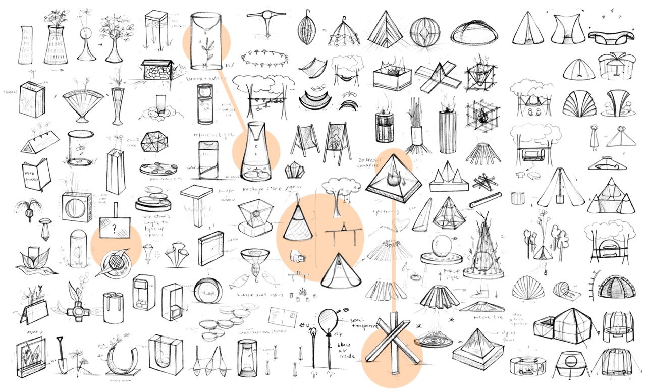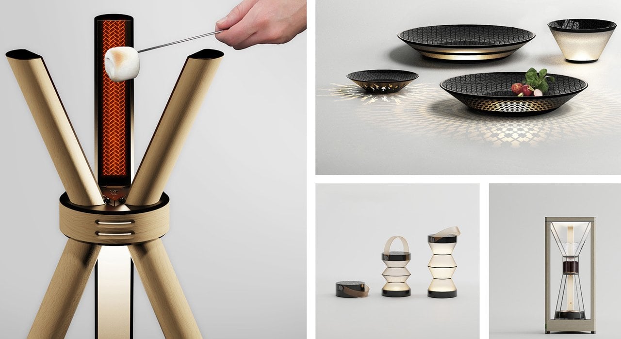 The S’more pit comes complete with an area to roast marshmallows, while the hanging lights create an interesting ambiance at the campsite and also light the way in occasional night walks to the loo. Featuring solar panels on the upper curved surface, the tableware diffuses light from within, and the coffee brewer keeps its station lighted while and after your cup of Joe is served. The entire set of accessories is inspired by minimalism, celebration, and environment, and that symbolism is carried beyond the looks.